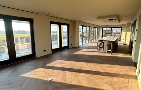 Het spuitwerk zorgt voor rust, licht en een gelijkmatige uitstraling door het hele huis. Hierdoor komen vloeren, meubels en lichtval optimaal tot hun recht en voelt de woning afgewerkt tot in de details.