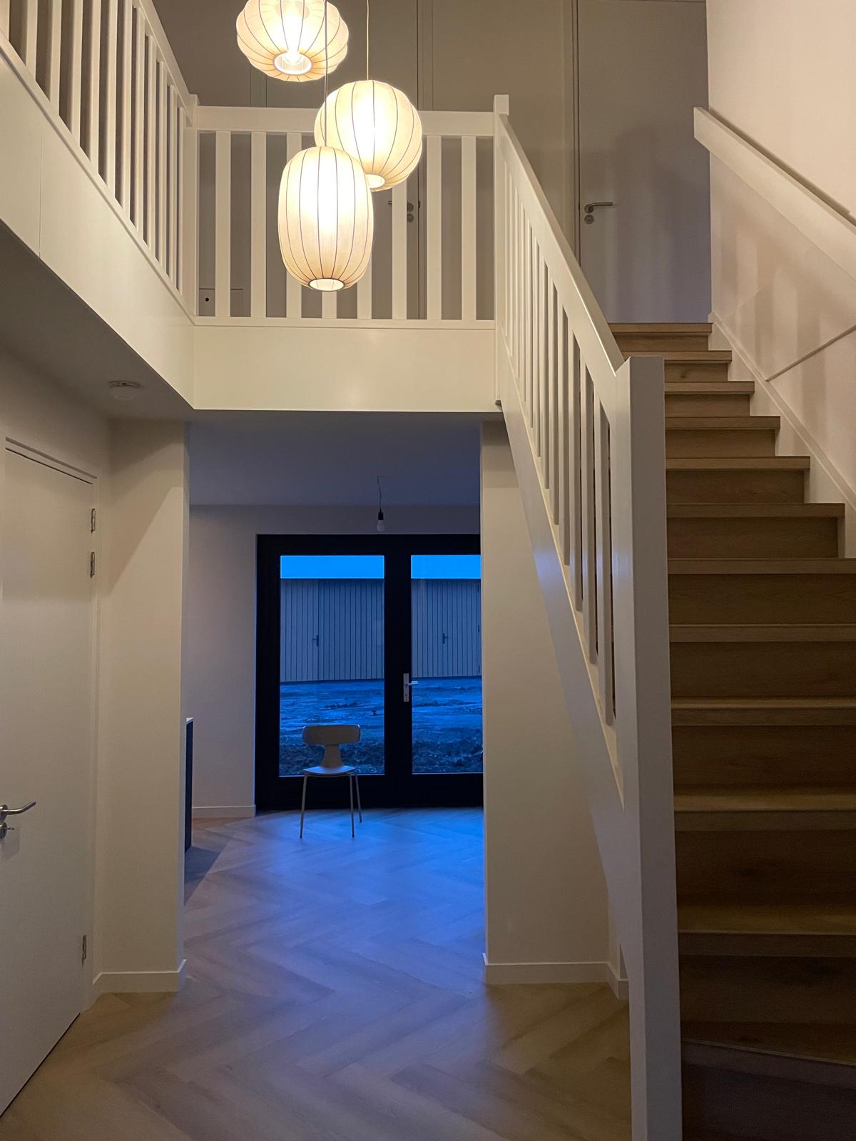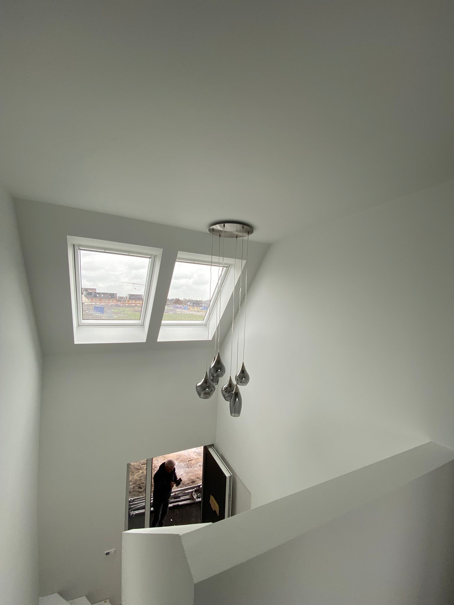 • Moderne woning met strak gespoten wanden, plafonds en trapgat